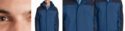 From misty mornings to evening downpours, this fully seam sealed, colorblock jacket will help keep you dry and protected from whatever Mother Nature throws at you. 5000MM fabric waterproof rating, 5000G/M2 fabric breathability rating, detachable hood with drawcord and toggles for adjustability, storm flap with hook and loop closures, zippered chest pocket, front zippered pockets, adjustable tab cuffs with hook and loop closures and an open hem with drawcord and toggles. Contrast Eddie Bauer logo on right chest. WeatherEdge® logo on left sleeve. 100% polyester dobby shell, mesh body lining, 100% nylon accents.